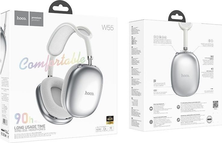 | Информация | Беспроводные наушники Hoco W55 — это стильный и удобный аксессуар для любителей музыки и активного образа жизни. Они обеспечивают качественное звучание до 90 часов благодаря ёмкому аккумулятору и технологии Bluetooth 5.4. |