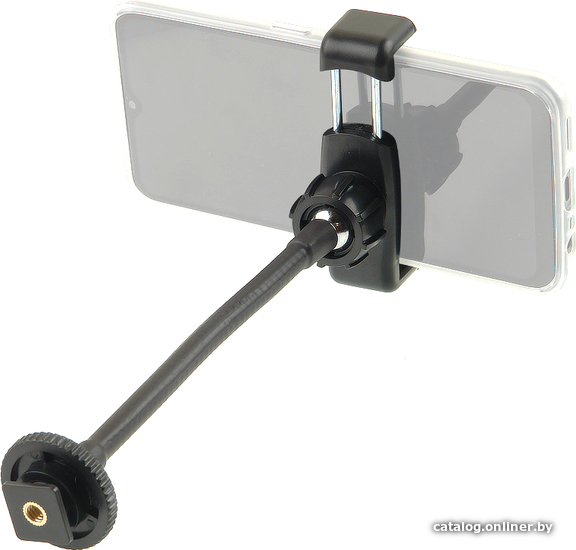 | Информация | Falcon Eyes PhoneHolder 160F – держатель для смартфона, камера которого используется для фото- или видеосъемки. Металлическая штанга в полимерной оболочке изгибается с существенным усилием, позволяет точно расположить камеру смартфона относительно объекта съемки и стабильно сохраняет выбранное положение. Зажим с подпружиненной лапкой и резиновыми вставками рассчитан на смартфоны с шириной корпуса от 56 до 86 мм. Шаровое крепление с фиксатором позволяет дополнительно регулировать положение камеры: зажим со смартфоном можно поворачивать на 360° вокруг своей оси и наклонять на 45°. Для установки на штатив, кольцевой осветитель или другую опору в основании держателя предусмотрены разъем для холодного башмака и латунная втулка на винт 1/4”. |
