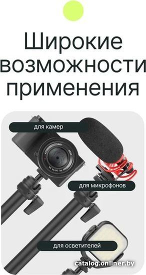 | Информация | Raylab RL-GT3 - трехрычажный кронштейн, позволяющий установить фото и видео оборудование на стол, полку или другую плоскую поверхность, шириной от 3 до 58 мм. Конструктив модели разборный, поэтому вы можете использовать его части как вместе, так и раздельно. Кронштейн оборудован шаровыми головками с возможность поворота на 360°. Универсальные крепления ? ,?, ? и возможность удержать вес до 1 кг делают его совместимым с большинством камер, осветителями, микрофонами, стедикамами и другим оборудованием в студии и дома. Длина всех секций - 96 см. Небольшой вес и широкие возможности делают это кронштейн незаменимым инструментом для записи мастер-классов, стримов, геймеров и предметной съемки. Длина секций: 25 / 35,5/ 35,5 см |