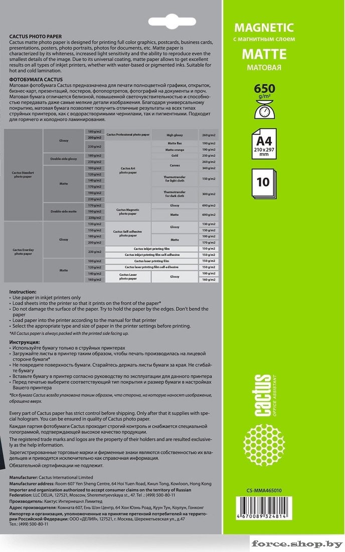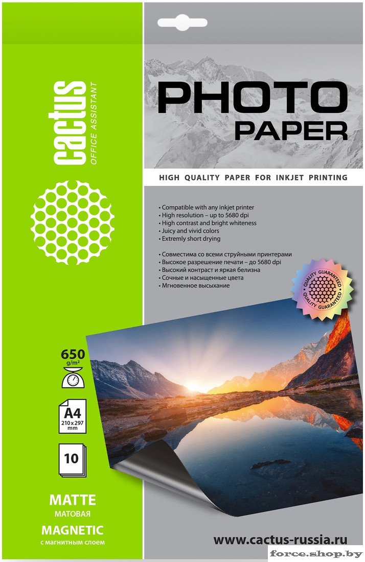 Бумага с магнитным слоем CACTUS матовая A4 650г/м2 10 л CS-MMA465010