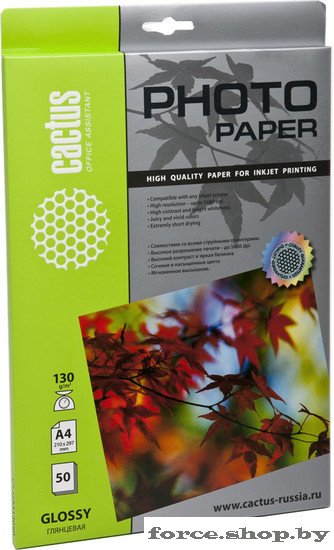 Фотобумага CACTUS Глянцевая A4 130 г/кв.м. 50 листов (CS-GA413050)