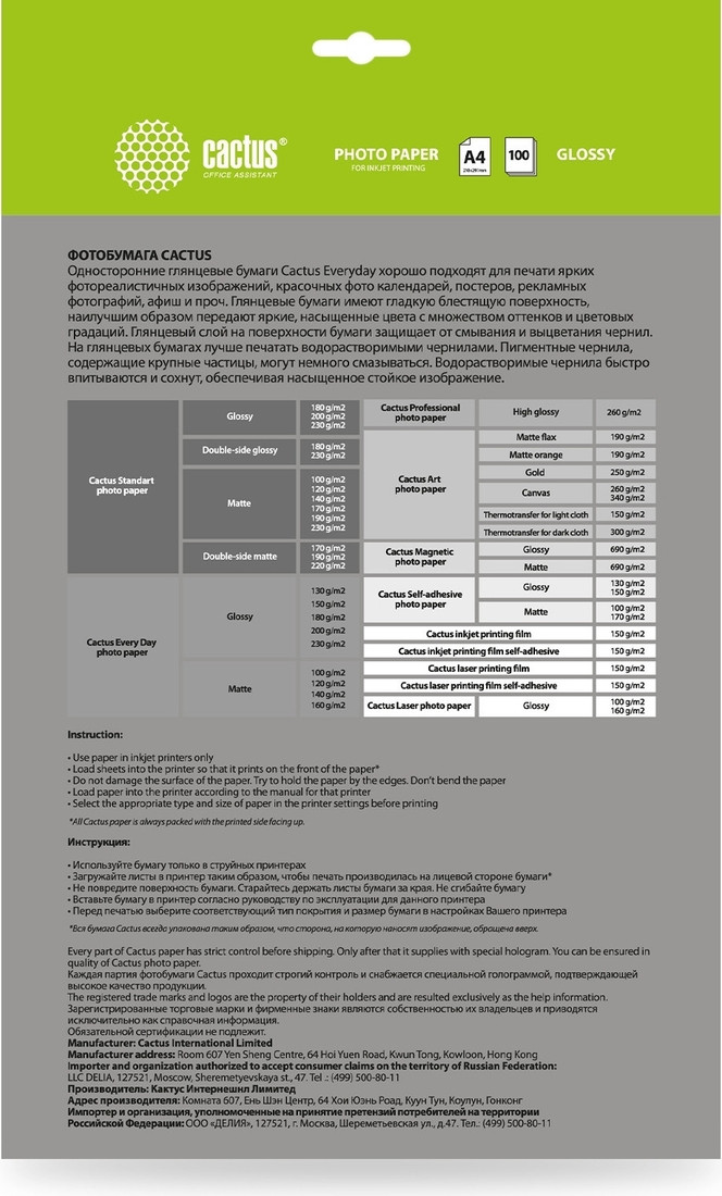 Фотобумага CACTUS Глянцевая A4 130 г/м2 100 листов CS-GA4130100ED