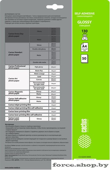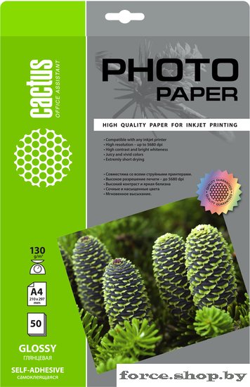 Фотобумага CACTUS Глянцевая A4 130 г/м2 50 л