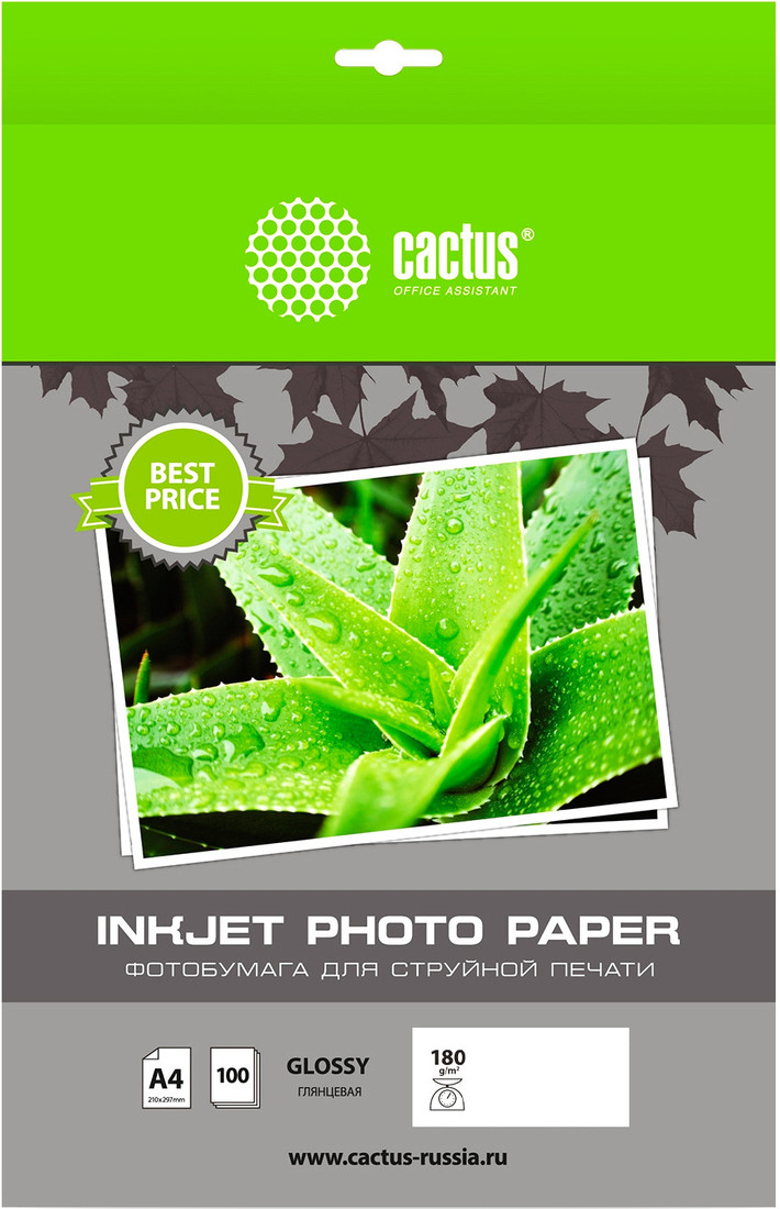 Фотобумага CACTUS Глянцевая A4 180 г/м2 100 листов CS-GA4180100ED