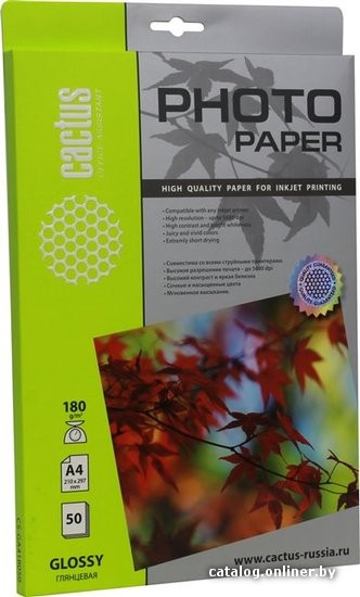 Фотобумага CACTUS Глянцевая A4 180 г/м2 50 листов [CS-GA418050E]