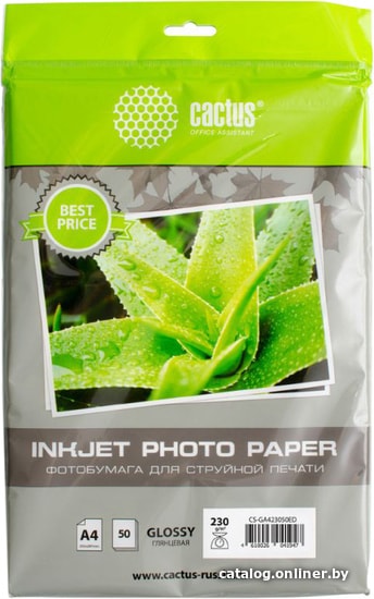 Фотобумага CACTUS Глянцевая A4 230 г/м2 50 листов