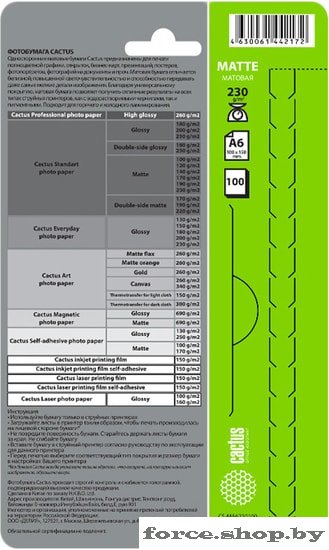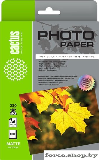 Фотобумага CACTUS Матовая 10x15 230 г/м2 100 листов CS-MA6230100