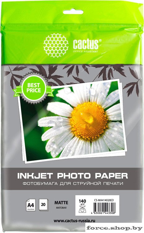 Фотобумага CACTUS Матовая A4 140 г/м2 20 листов CS-MA414020ED