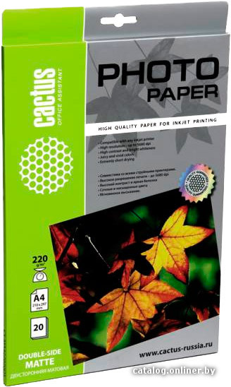 Фотобумага CACTUS Матовая А4 220 г/м2 20 листов (CS-MA422020DS)
