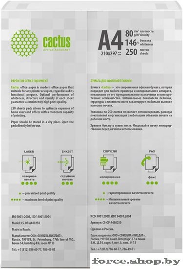 Офисная бумага CACTUS A4 80 г/м2 250 л CS-OP-A480250
