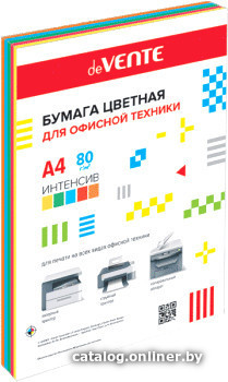 | Информация | Бумага цветная для офисной техники "deVENTE" A4 100 л, 80 г/м?, интенсивные цвета, ассорти (5 цветов) картонная подложка, в термоусадочной пленке |