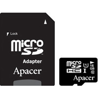 Карта памяти Apacer microSDHC UHS-I (Class 10) 16GB + адаптер (AP16GMCSH10U1-R)