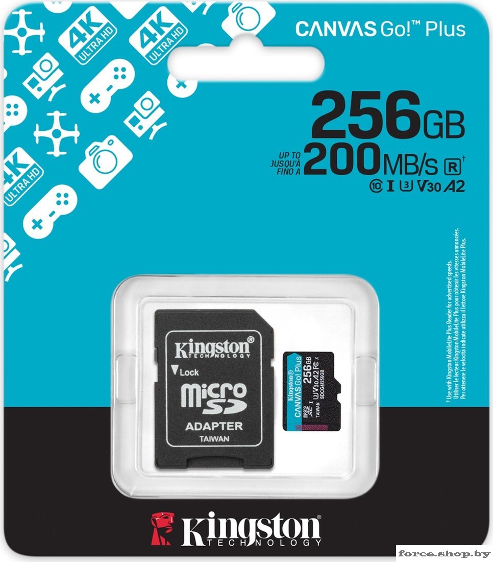 Карта памяти Kingston Canvas Go! microSDXC 256GB SDCG4/256GB (с адаптером)