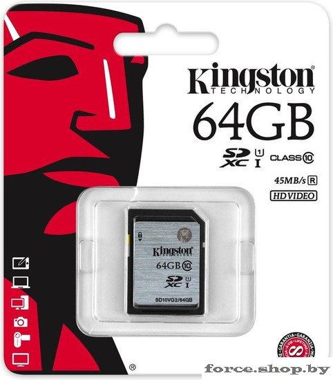 Карта памяти Kingston SDXC (Class 10) 64GB (SD10VG2/64GB)