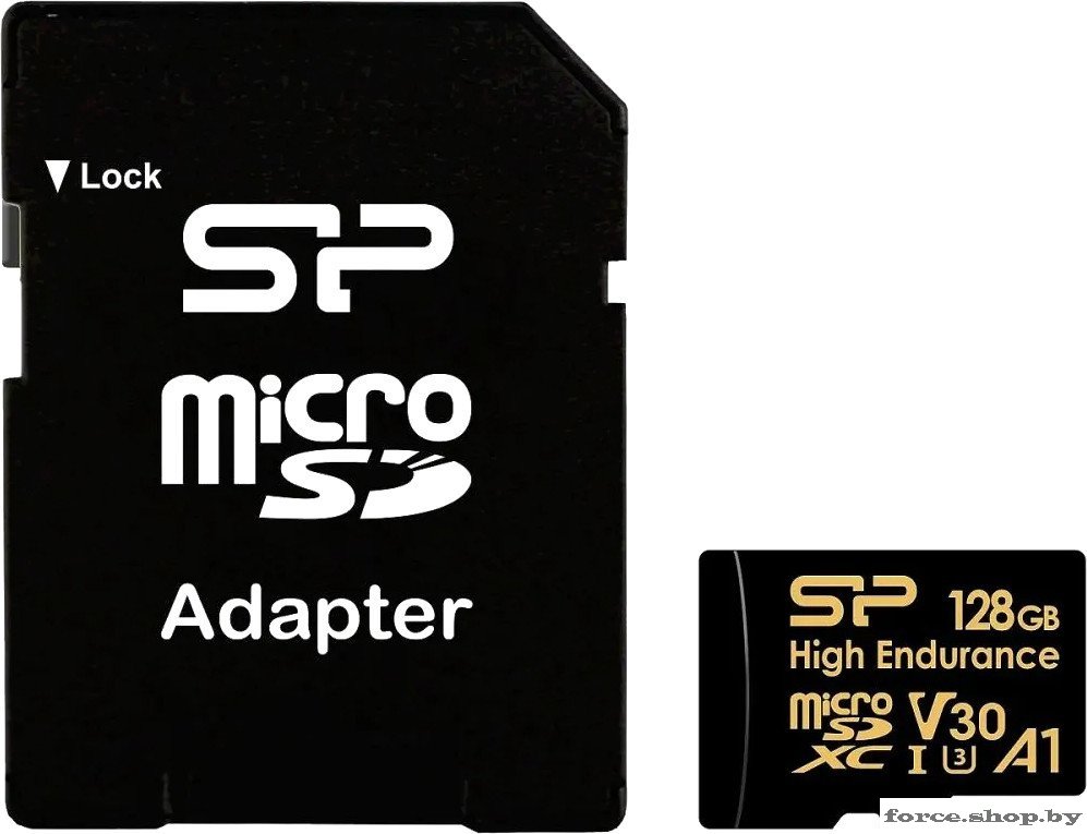 Карта памяти Silicon-Power Golden Series High Endurance microSDXC SP128GBSTXDV3V1HSP 128GB (с адаптером)