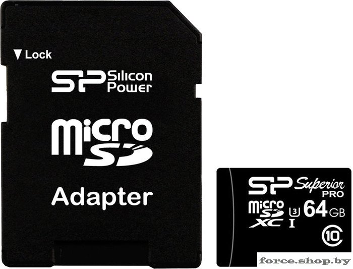 Карта памяти Silicon-Power microSDXC UHS-I U3 Class 10 64GB + адаптер [SP064GBSTXDU3V10SP]