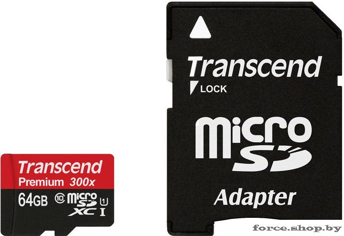 Карта памяти Transcend microSDXC UHS-I 300x Premium (Class 10) 64GB [TS64GUSDU1]