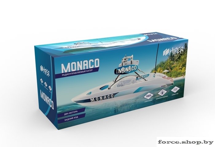 | Комплектация | • Радиоуправляемый катер HIPER «MONACO»###BR###• Пульт управления###BR###• Кабель USB для зарядки аккумулятора###BR###• Аккумулятор Ni-Cd 4.8В / 700 мАч###BR###• Крона 9В для пульта управления###BR###• USB кабель для зарядки катера###BR###• Инструкция |