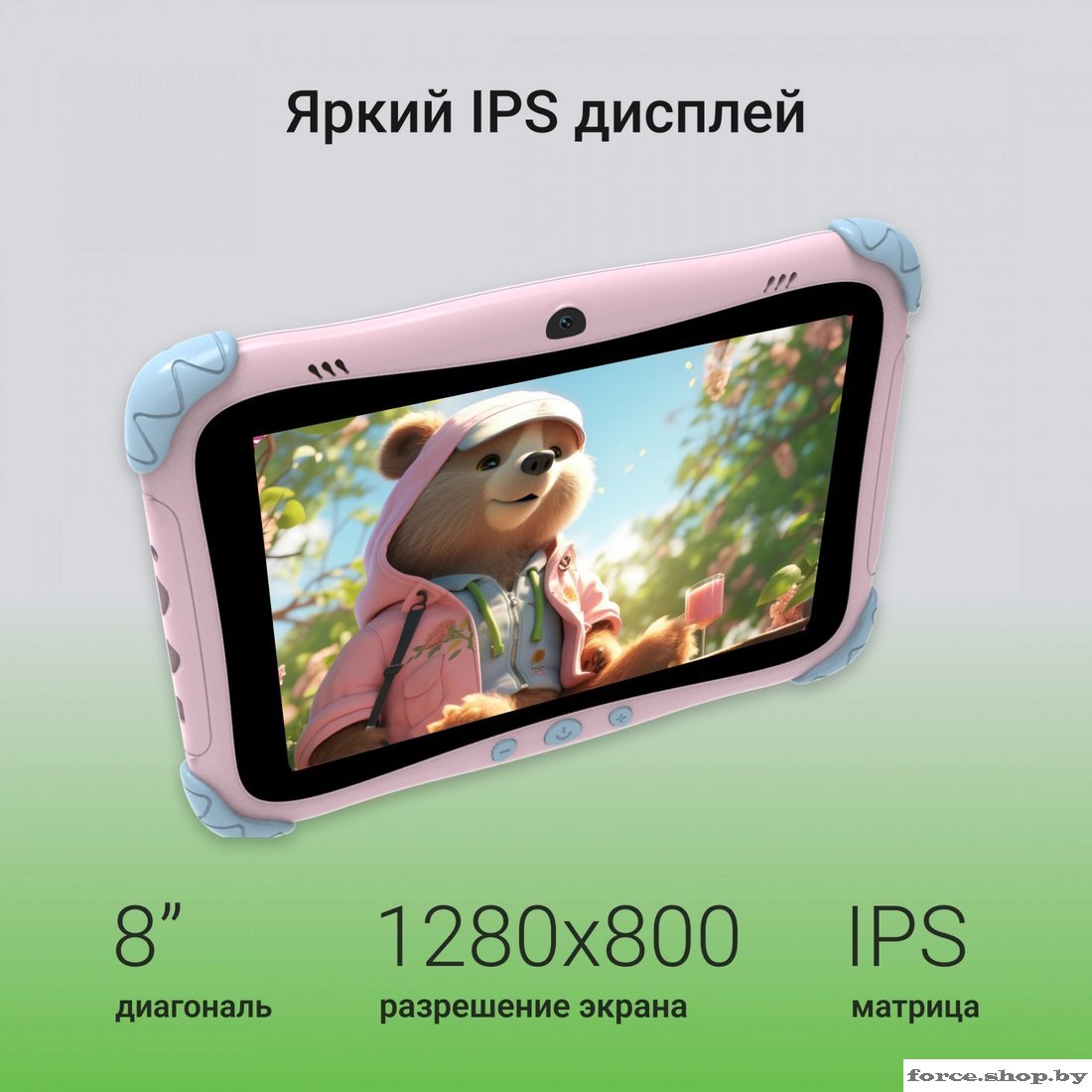| Информация | - Разработан специально для детей###BR###Яркий, привлекательный дизайн с элементами игрушек сразу привлекает внимание ребёнка. Планшет поставляется в ударопрочном корпусе и дополнен стилусом, чтобы обучение и игра стали ещё интереснее.###BR######BR###- Производительный процессор###BR###8-ядерный процессор с частотой 1.6 ГГц обеспечивает быструю работу приложений, плавную анимацию и стабильную производительность. Ребёнок может учиться, играть и смотреть мультфильмы без подвисаний.###BR######BR###- Оптимальный объём памяти###BR###Устройство оснащено 2 ГБ оперативной и 32 ГБ встроенной памяти. Для хранения мультфильмов, игр и обучающих приложений доступна возможность расширения памяти — поддерживаются карты microSD до 512 ГБ.###BR######BR###- Безопасный контент и родительский контроль###BR###Планшет поддерживает специальные детские режимы с функцией родительского контроля. Родители могут ограничить доступ к нежелательным приложениям и задать время использования гаджета.###BR######BR###- Прочный корпус с защитой от ударов###BR###Мягкие вставки на углах и плотный пластиковый корпус обеспечивают защиту от падений и механических повреждений. Это делает планшет надёжным устройством для активного детского пользования.###BR######BR###- Развитие через творчество###BR###В комплекте идёт стилус для рисования, который помогает ребёнку развивать воображение, моторику и творческие способности. Планшет поддерживает множество обучающих и развлекательных программ. |