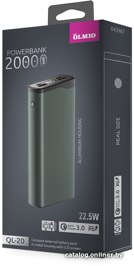 Внешний аккумулятор Olmio QL-20 20000mAh (серый)