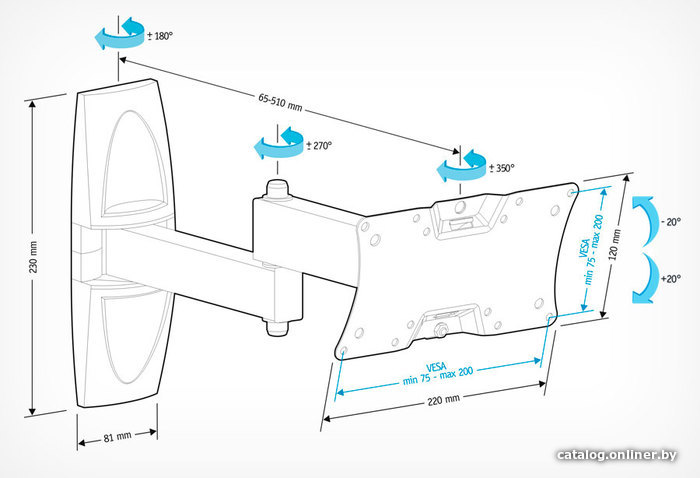 | Расстояние от стены (потолка) | 65 — 510 мм |