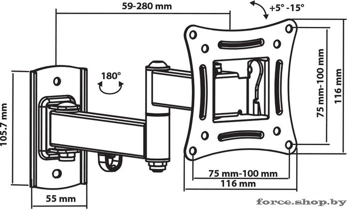 | Расстояние от стены (потолка) | 59 — 280 мм |