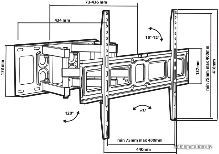 | Расстояние от стены (потолка) | 73 — 436 мм |