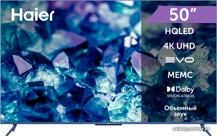 | Информация | Дисплей HQLED###BR###Дисплей с подсветкой HQLED позволит насладиться максимально чистым и ярким отображением чёрного, белого, красного, зелёного и синего цветов.###BR######BR###MEMC###BR###Плавное изображение с технологией МЕМС позволит смотреть любимые передачи без разрыва картинки, добавляя кадры в контент с низкой частотой кадров.###BR######BR###Технология Far Field###BR###Управляйте телевизором без пульта с инновационной технологией Far Field, просто озвучив свой запрос: «Окей, Google, открой приложение EVO».###BR######BR###Dolby Atmos###BR###Окунитесь в трехмерный звук с технологией Dolby ATMOS, которая добавляет каналы высоты и делает звук трёхмерным как в кинотеатре.###BR######BR###DBX-TV###BR###Использование цифрового улучшения звука DBX-TV в сверхтонких телевизорах позволяет эффективнее использовать встроенную акустическую систему, звучание становится сопоставимым с динамиками значительно большего размера и мощности. Теперь вы можете насладиться масштабным звуком без дополнительных акустических систем.###BR######BR###Технология Chromecast###BR###Технология Chromecast позволяет выйти за рамки маленького экрана – теперь вы можете транслировать контент со смартфона, планшета или компьютера на телевизор, в любом приложении поддерживающем встроенную технологию Chromecast для платформы Android TV.###BR######BR###HDR 10###BR###Телевизоры Haier воспроизводят изображение именно таким, как оно задумано создателями. Технология HDR10 позволяет отразить на экране всю глубину цветов, что способствует высочайшей детализации любой сцены. Для максимального удовольствия от просмотра.###BR######BR###Масштабирование разрешения до уровня 4K UHD###BR###В телевизорах Haier доступна технология масштабирования изображения в формат, сопоставимый по качеству изображения с 4K UHD. Наилучший результат при таком масштабировании получается при конвертации в 4K UHD изображения формата Full HD и HD.###BR###* Качество конвертированного изображения может меняться в связи с разными типами форматов исходного контента.###BR######BR###Безрамочный дизайн###BR###Безрамочный дизайн — это максимум погружения в изображение и безграничное удовольствие от просмотра, плюс современный внешний вид Вашего телевизора. |