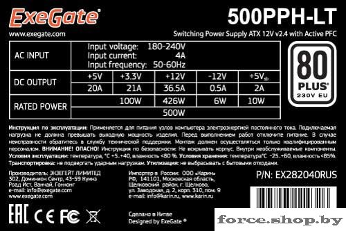 Блок питания ExeGate 500PPH-LT 80 Plus EX282040RUS-S