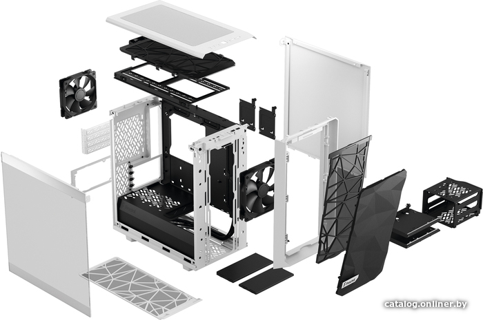 | Информация | Meshify 2 Mini предлагает поклонникам mATX отличное сочетание воздушного потока и гибкости для их любимого форм-фактора. Смелый внешний дизайн с асимметричной угловатой сетчатой передней частью дополняется панелью из закаленного стекла и полностью съемной верхней частью. Это хрестоматийный пример того, что следует ожидать от современного корпуса mATX, когда речь идет о гибкости и простоте использования. • Каноническая угловатая сетчатая передняя часть обеспечивает фильтрацию воздушного потока и смелую эстетикуc • Компактный, но вместительный корпус позволяет максимально использовать возможности mATX благодаря высокой эффективности использования пространства и надежной поддержке компонентов • Открытая внутренняя планировка создает плавный поток приток воздуха от передней панели до заднего выпускного отверстия • Свободное место для видеокарты длиной до 306 мм, включая фронтальные вентиляторы, с общим пространством 331 мм • Бесшовная панель из закаленного стекла с опорой на стальную раму и безболтовым механизмом верхней фиксации • Полностью съемная верхняя панель и верхний кронштейн вентилятора, который открывается, обеспечивая отличный доступ внутрь и удобную прокладку кабелей • Съемный двухслойный передний нейлоновый фильтр для усиления воздушного потока • Три фронтальных порта USB, включая один USB 3.1 Gen и 2 Type-C с быстрой зарядкой и скоростью до 10 Гбит/с • Конструкция передней панели с откидывающимся съемным сетчатым фильтром без привязи для облегчения доступа к креплениям передних вентиляторов • Гибкие возможности хранения данных с поддержкой двух 2,5"/3,5" дисков и до четырех твердотельных накопителей (два кронштейна для SSD входят в комплект поставки) • Установка до 7x 120 мм или 4x 140 мм вентиляторов (1x 120 мм и 1x 140 мм вентиляторы Dynamic X2 входят в комплект поставки) • Легко очищаемые фильтры спереди, сверху и на основании с полным покрытием блока питания и удобным доступом спереди • Безмостовые слоты расширения PCI обеспечивают беспрепятственное подключение для упрощенной установки • Вентилируемый кожух блока питания с двухэлементной съемной крышкой для оптимального скрытия кабелей и передней опорой радиатора • Встроенные кабельные направляющие с хомутами на липучках еще больше упрощают прокладку кабелей за материнской платой |