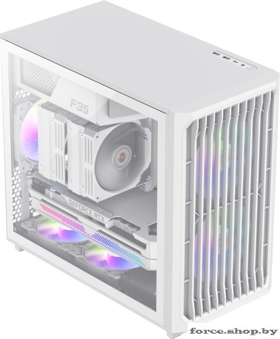 | Информация | - GameMax F35 WH Micro-ATX: Компактный корпус с мощным охлаждением###BR######BR###- Прочный и стильный дизайн###BR###GameMax F35 WH Micro-ATX — это эргономичный и воздушный корпус с закаленным стеклом 4 мм и стальной рамой, обеспечивающий эстетичный внешний вид и надежность.###BR######BR###- Эффективная система охлаждения###BR######BR###3? 120 мм ARGB-вентилятора для мощного воздушного потока и стильной подсветки.###BR###Поддержка башенных кулеров до 166 мм и водяного охлаждения 240/280 мм.###BR###- Совместимость с современными комплектующими###BR######BR###Поддержка материнских плат Micro-ATX и backplane-плат.###BR###Размещение 4,5-слотовых видеокарт с прямым подключением GPU.###BR###- Удобство установки и кабель-менеджмента###BR######BR###Быстросъемные панели без использования инструментов обеспечивают легкий доступ к комплектующим.###BR###- Практичное расположение блока питания###BR######BR###Верхнее крепление БП способствует упрощенному монтажу и удобному управлению кабелями. |