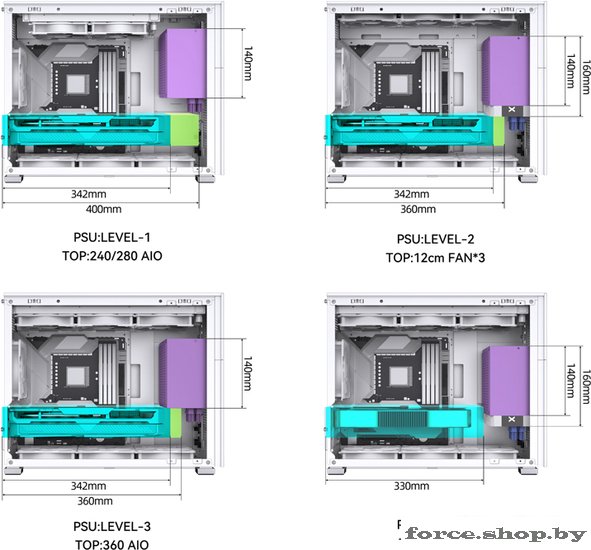 | Поддерживаемые СЖО | сверху: 240 - 360 мм###BR###снизу: 240 - 360 мм###BR###сзади: 120 мм |