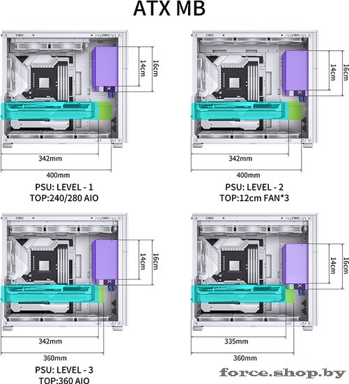 | Поддерживаемые СЖО | сверху: 240 - 360 мм###BR###снизу: 240 - 360 мм###BR###сзади: 120 мм |