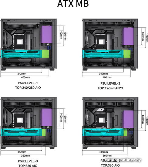 | Поддерживаемые СЖО | сверху: 240 - 360 мм###BR###снизу: 240 - 360 мм###BR###сзади: 120 мм |