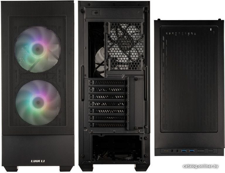 | Конфигурация вентиляторов | Сверху: 2 х 120/140 мм###BR###Спереди: 2 х 120/140 мм###BR###Задняя часть: 1 х 120 мм###BR######BR###В комплекте:###BR###Спереди: 2 x 140 мм вентилятора ARGB PWM###BR###Сзади: 1 x 120-мм вентилятор ARGB PWM |
