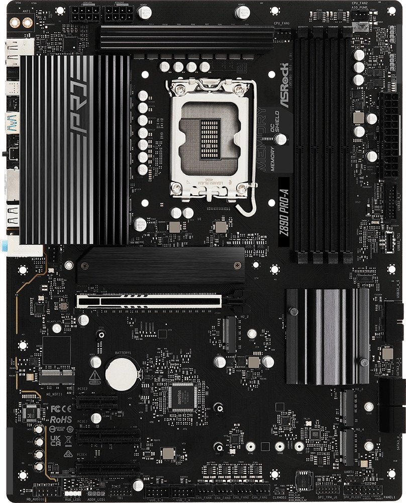 | Информация | - Материнская плата ASRock Z890 Pro-A разработана с использованием чипсета Intel Z890 и поддерживает процессоры Intel Core Ultra. Она оснащена сокетом LGA1851, что делает ее совместимой с самыми современными процессорами. Данная плата имеет форм-фактор ATX и выполнена в черном цвете.###BR######BR###- Плата поддерживает DDR5 память с максимальным объемом до 256 GB. Также она оснащена четырьмя слотами памяти, работающими в двухканальном режиме, и поддерживает Intel XMP для легкого разгона. Максимальная частота памяти составляет 9066 МГц с возможностью разгона.###BR######BR###- На борту имеются 4 слота M.2, включая разъемы PCIe Gen5 и Gen4, а также 4 порта SATA 3.0 для подключения накопителей. Кроме того, поддерживается RAID 0, 1, 5 и 10 для SATA и NVMe.###BR######BR###- ASRock Z890 Pro-A оснащена встроенным аудиокодеком Realtek ALC897 с 7.1-канальным звуком и встроенной сетью Ethernet с пропускной способностью 2.5 Гбит/с. На задней панели представлены разнообразные разъемы, включая HDMI 2.1, DisplayPort 1.4 и Thunderbolt 4. |