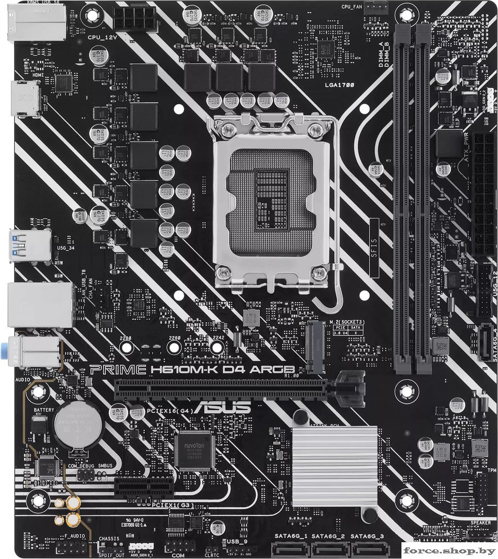 | Информация | -ASUS PRIME H610M-K D4 ARGB — это материнская плата формата micro-ATX, предназначенная для установки процессоров Intel поколений 12, 13 и 14 с использованием сокета LGA1700. Она построена на базе чипсета Intel H610 и обеспечивает поддержку технологии Intel Turbo Boost. Благодаря двум слотам DDR4 с возможностью установки до 64 ГБ ОЗУ, а также поддержке XMP-профилей, данная модель отлично подойдёт как для офисных задач, так и для игр начального уровня.###BR######BR###-Слоты расширения включают один разъем PCIe 4.0 x16 и один PCIe 3.0 x1. Также плата оснащена одним разъёмом M.2 (ключ M) с поддержкой PCIe 3.0 x4, а также четырьмя портами SATA 6 Гбит/с для подключения накопителей. Несмотря на отсутствие поддержки RAID, данная модель предлагает все базовые возможности для конфигурации системы хранения данных.###BR######BR###-Встроенная графика может использовать HDMI 2.1 порт на задней панели для вывода изображения, поддерживая разрешение до 4K при 60 Гц. Набор внешних интерфейсов включает 4 порта USB 2.0, 2 порта USB 3.2 Gen1 Type-A, комбинированный разъем PS/2, 3 аудиоразъема и Ethernet Realtek 1 Гбит/с. Также предусмотрен стандартный аудиокодек с поддержкой 7.1-канального звука.###BR######BR###-Внутренние разъемы представлены портами для подключения вентиляторов, передней панели, аудио, S/PDIF, TPM, а также двумя разъемами для адресной подсветки ARGB. Наличие ARGB подсветки и черная цветовая гамма делают плату привлекательной для сборок с эстетическим акцентом. Несмотря на свою доступность, PRIME H610M-K D4 ARGB включает в себя современные программные функции ASUS, включая Armoury Crate и Fan Xpert. |