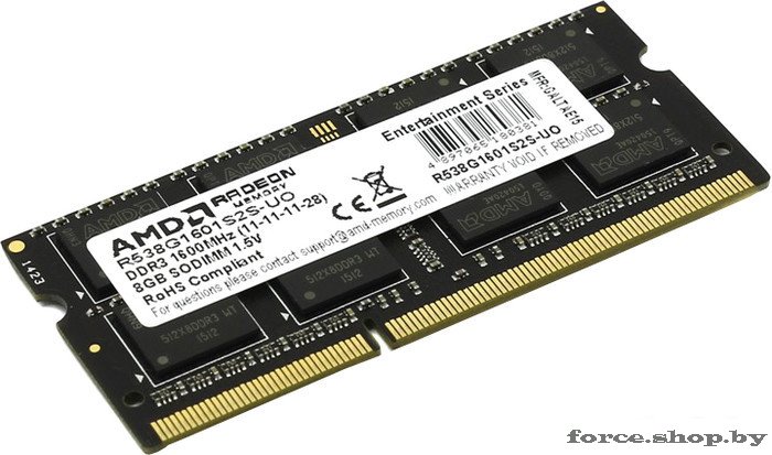 Оперативная память AMD 8GB DDR3 SO-DIMM PC3-12800 (R538G1601S2S-UO)
