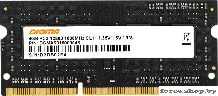 Оперативная память Digma 4ГБ DDR3 SODIMM 1600 МГц DGMAS31600004S