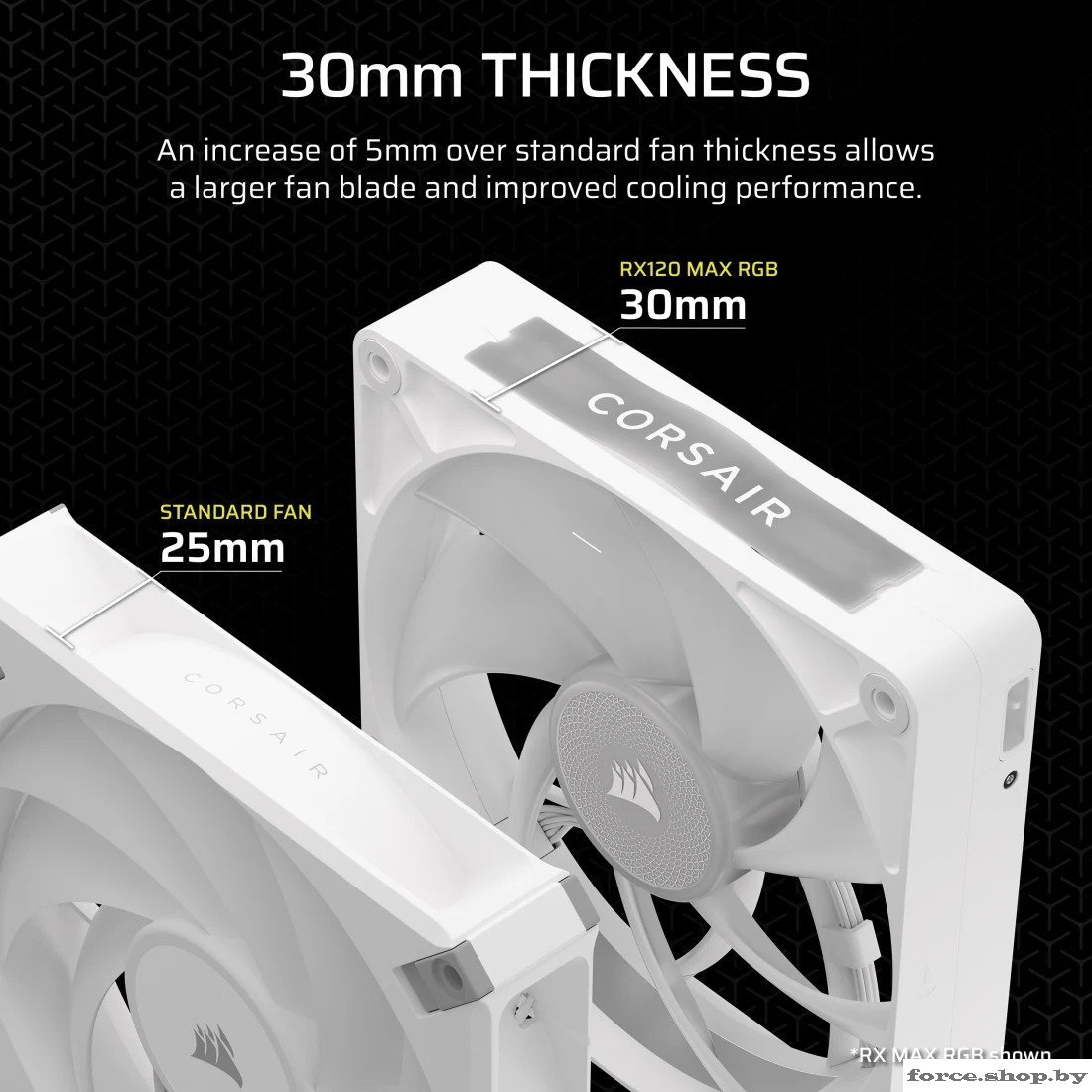 | Информация | - CORSAIR iCUE LINK RX120 MAX RGB - это утолщенный высокопроизводительный вентилятор для корпуса, отличающийся толщиной в 30 мм, что обеспечивает увеличенный воздушный поток и высокое статическое давление. Благодаря увеличенным лопастям и усовершенствованной аэродинамике, вентилятор способен эффективно охлаждать компоненты ПК, работая на более низких оборотах при сохранении высокой эффективности.###BR######BR###- Основное преимущество данной модели - наличие восемнадцати RGB-светодиодов с возможностью синхронизации через программное обеспечение iCUE, что позволяет индивидуализировать внешний вид вашей системы. Подключение вентилятора реализовано по фирменной технологии iCUE LINK, что обеспечивает простоту монтажа и аккуратный внешний вид без нагромождения проводов.###BR######BR###- Вентилятор оснащён подшипником с магнитным куполом, который минимизирует механический шум и гарантирует долгий срок службы устройства. Диапазон регулировки оборотов составляет от 400 до 2000 об/мин, максимальный воздушный поток достигает 71.3 CFM, а уровень шума не превышает 36.3 дБА, что делает его отличным выбором как для производительных, так и для тихих сборок.###BR######BR###- Модель поддерживает возможность последовательного подключения нескольких вентиляторов по единому кабелю (daisy chain), а также оснащена ШИМ-управлением скорости вращения. В комплекте поставляются фирменные крепёжные винты QuikTurn, кабель для подключения цепочкой и вся необходимая документация. |