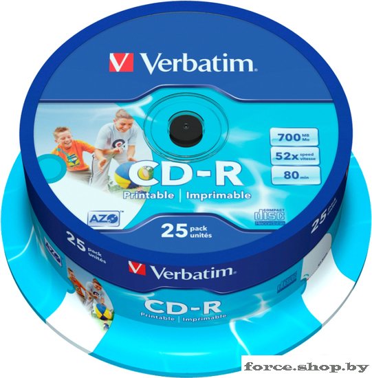 CD-R диск Verbatim AZO Printable 700Mb 52x 43439 (CakeBox, 25 шт.)