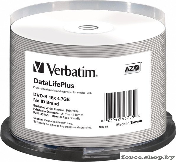 | Информация | DataLifePlus###BR###Профессиональные оптические носители Verbatim превосходят требования и стандарты, принятые соответствующими органами стандартизации. Более строгие требования гарантируют лучшую совместимость с различными видами дисководов и средств записи. Результатом этого является более высокое качество записи и, следовательно, более длительный срок хранения данных и лучшая считываемость. Узнать профессиональные оптические носители Verbatim можно по логотипу DataLifePlus.###BR######BR###Технология AZO###BR###AZO - это патентованная технология, принадлежащая компании Verbatim на исключительных правах. Она позволяет добиться максимальной устойчивости к действию УФ-излучения для увеличения степени защиты и надежности.###BR######BR###Для термопечати###BR###На дисках Verbatim для термопечати можно печатать фотографии высокого разрешения и четкий текст по всей площади с помощью термопринтера. Быстросохнущая поверхность обеспечивает безукоризненно четкое качество печати. Диски для термопечати совместимы с термальными принтерами TEAC P55B & C, Rimage Everest 400 & 600, а также с моделями серии Rimage Prism Plus.###BR######BR###Поверхность: Wide Thermal Printable###BR###Область печати: 21 - 118 мм |