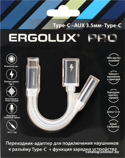 Адаптер Ergolux ELX-CSA02-C01 USB Type-C/Lightning (0.12 м, белый)