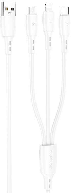 Кабель Borofone BX71 USB Type-A - Lightning / Micro-USB / USB-C (1 м, белый)