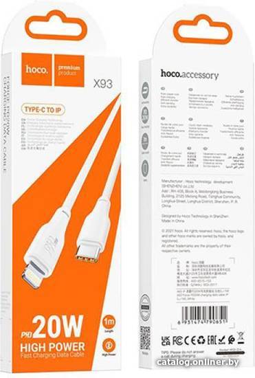 Кабель Hoco X93 USB Type-C - Lightning (1 м, белый)
