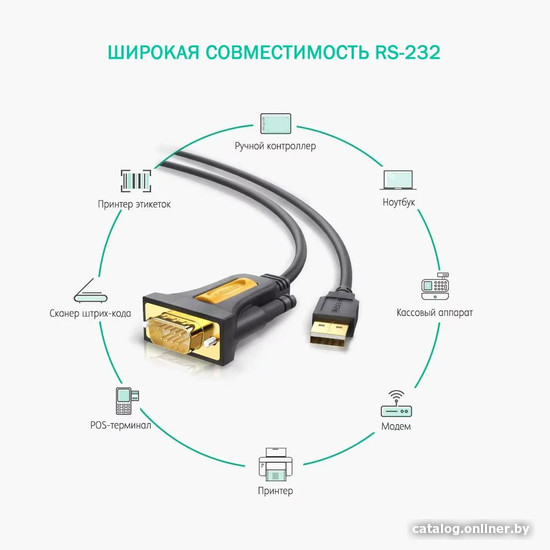 Кабель Ugreen CR104 20223 USB-А 2.0 - DB9 RS-232 (3 м)