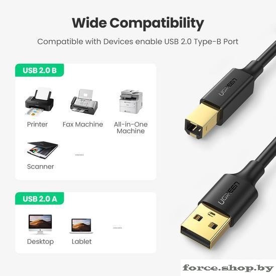 Кабель Ugreen US135 USB Type-A - USB Type-B (1 м, черный)