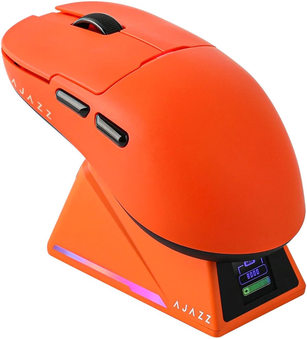 | Информация | - AJAZZ AJ159 APEX — это флагманская геймерская мышь с экстремальной точностью и скоростью, способная разгоняться до 42 000 DPI, с трекингом 750 IPS и ускорением 50G, обеспечивая невероятную отзывчивость и точность в самых динамичных играх. - Три режима подключения: Bluetooth, 2.4 ГГц беспроводной режим, Проводное подключение — для максимальной универсальности и совместимости. - Частота опроса: 8000 Гц в беспроводном режиме 1000 Гц в проводном режиме Это обеспечивает время отклика всего 0.125 мс, в 8 раз быстрее, чем у стандартных игровых мышей — идеальный выбор для киберспорта. - Лёгкий корпус — всего 56 г — мышь практически не ощущается в руке, обеспечивая максимальную манёвренность и контроль. - Надёжные переключатели Huano Green Shell White Dot Transparent с ресурсом до 100 миллионов нажатий, идеально подходят для интенсивного гейминга. - Встроенный аккумулятор 400 мАч + фирменная технология энергосбережения AJAZZ обеспечивают долгое время работы без подзарядки даже при активной игре. - Магнитная док-станция с RGB-дисплеем, которая не только заряжает мышь, но и отображает: дату и время, анимированные GIF-изображения, создавая яркий и персонализированный элемент вашего игрового пространства. |