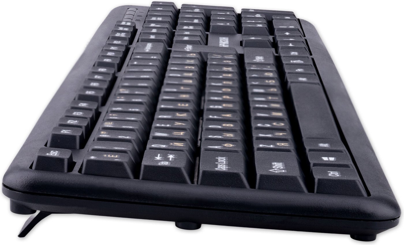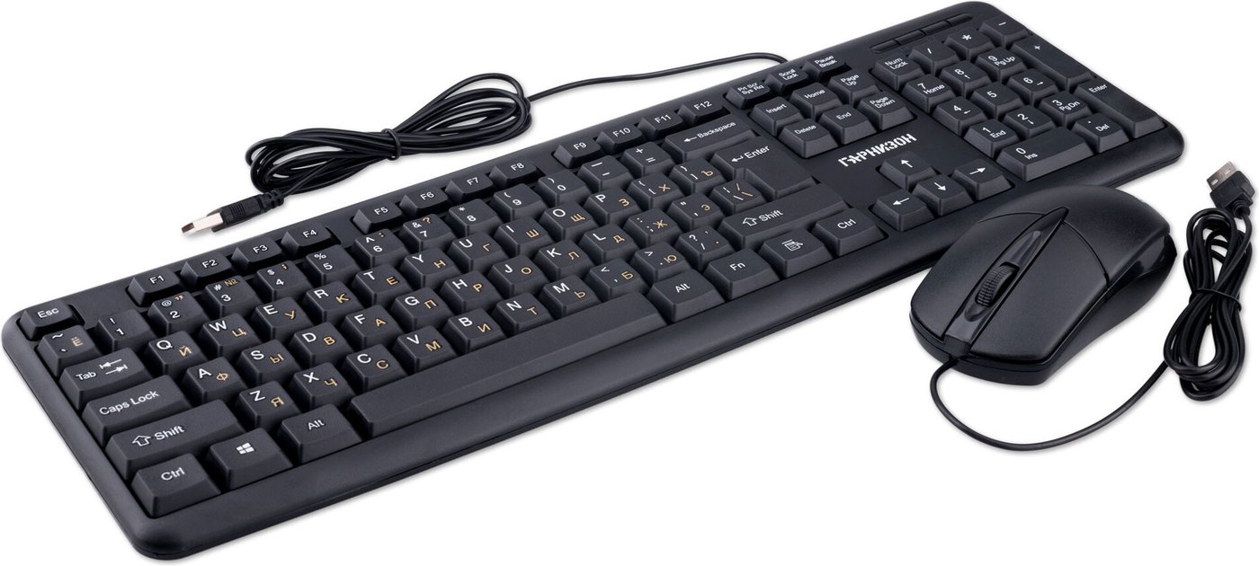 | Информация | Проводной комплект клавиатура + мышь чёрного цвета Защита от брызг Длина кабеля: 1.8 м Жёлтый цвет кириллицы |