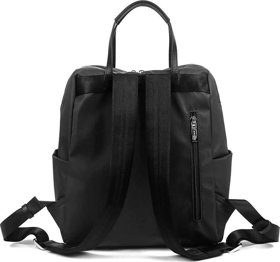 | Информация | - Текстильный рюкзак изготовлен из высококачественного полиэстера, который защищает от влаги и температурных колебаний. Кожаная отделка придает ему стильный вид и дополнительную прочность. - Рюкзак сохраняет свою форму и имеет основное отделение, закрывающееся на полукруглую молнию с двумя бегунками. Внутри предусмотрены 4 боковых кармана: 3 открытых и один на молнии, что обеспечивает удобство хранения. - На лицевой и тыльной сторонах также есть карманы на молнии, а по бокам расположены открытые карманы для быстрого доступа. Сверху находятся 2 кожаные ручки для удобного ношения в руке. - Регулируемые текстильные лямки шириной 4 см позволяют адаптировать рюкзак под любые параметры. Он вмещает формат А4, что делает его идеальным для учебы или работы. - Цвет фурнитуры — серебро, а вес рюкзака составляет 850 г. Размеры: 30?32?15 см. |
